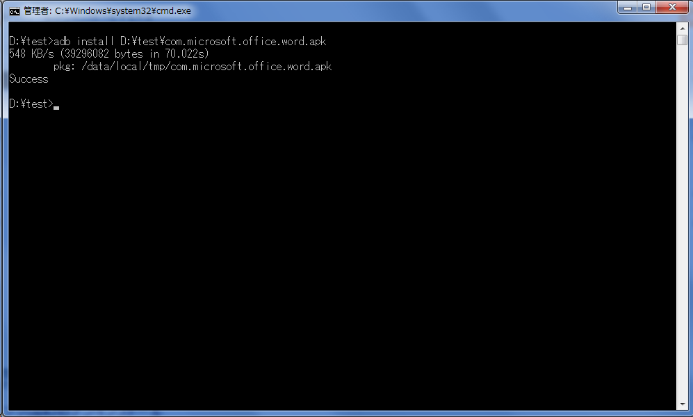 - 「adb install 」と入力する。